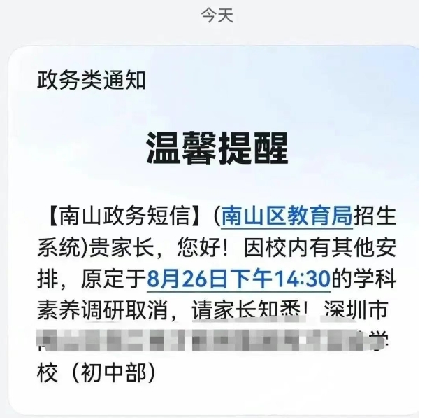 目前还有部分家长未接到通知,比如深实验的分班考目前是照旧。
