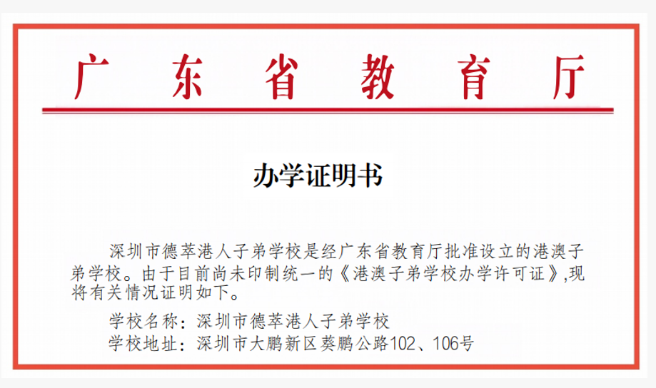 深圳市德萃港人子弟学校本学期插班申请及春季招生正式启动,招收中一至中五均可报名(中五接受插班);