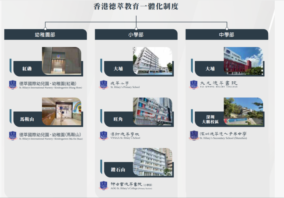 德萃是一所实打实的、来自香港本土的学校。香港德萃本身在当地就有一定知名度,旗下有7所校区,是一所囊括幼儿园到高中的一条龙学校,一起来看看吧👇